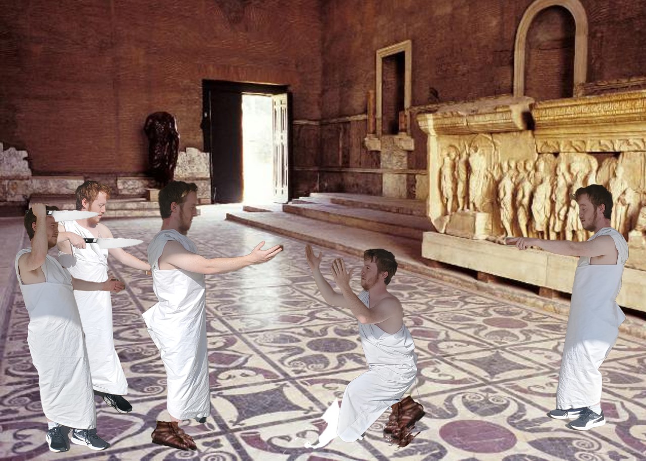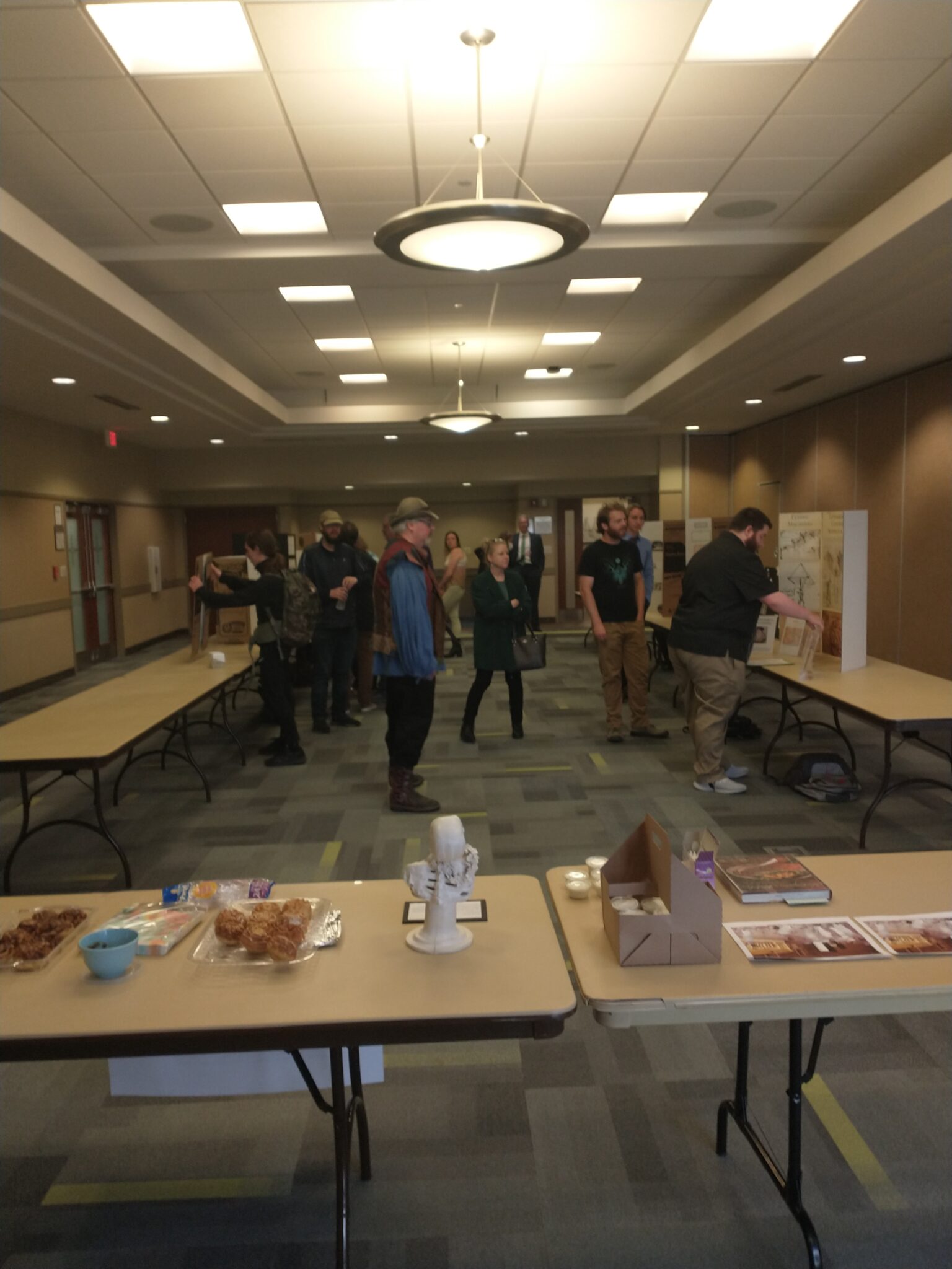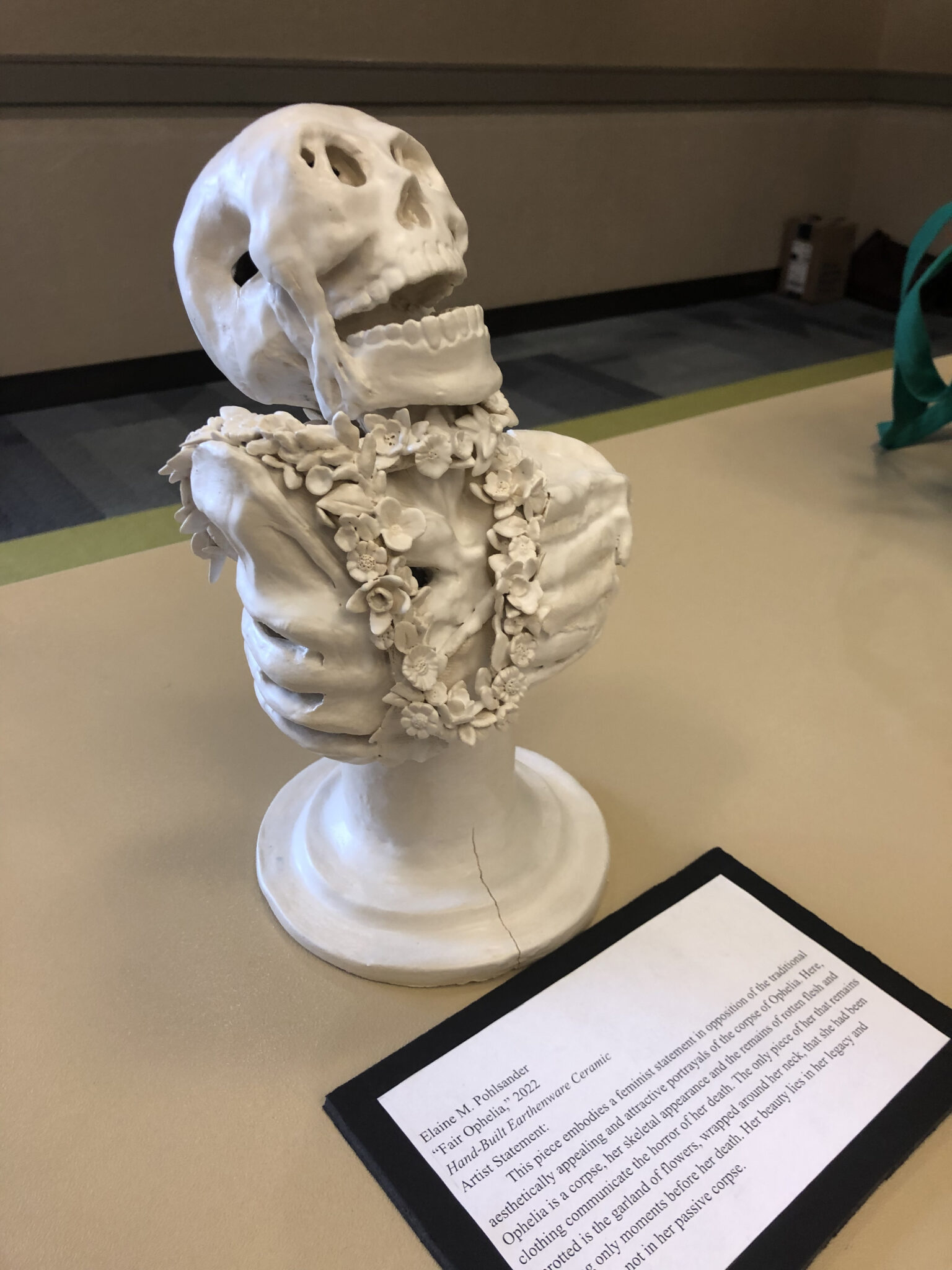 Students in English 3214 Shakespeare participated in S&T’s annual Renaissance Fair in the Havener Center on April 29, 2022. Their contributions included a bust of the drowned Ophelia, posters and a script for a new ending to Hamlet, sketches and weenicons of Shakespeare’s characters, a photograph of the assassination of Julius Caesar with one person playing all the roles, gooseberry fools (from a recipe in the book Shakespeare’s Kitchen), and venison pie (a popular Renaissance dish).